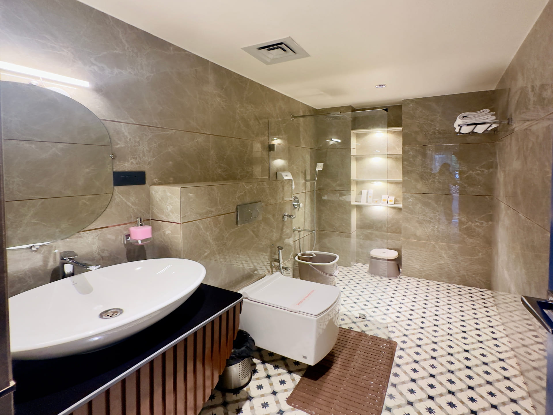 Step into luxury and comfort with our Royal Deluxe Room, where every detail is meticulously crafted to exceed your expectations. As you enter, you'll be greeted by a spacious and elegantly designed interior, adorned with tasteful décor and plush furnishings. Sink into the embrace of our sumptuous king-sized bed, fitted with premium linens to ensure a restful night's sleep. Pamper yourself in the opulent en-suite bathroom, featuring luxurious amenities and sleek modern fixtures. Indulge in a refreshing rain shower or unwind in the deep soaking tub, surrounded by marble accents and soft ambient lighting. Stay connected with complimentary high-speed Wi-Fi and enjoy your favorite shows on the 43 inch Sony Android Google LED, equipped with premium cable channels. For added convenience, a well-stocked minibar is at your disposal, offering a selection of beverages and snacks to satisfy your cravings.